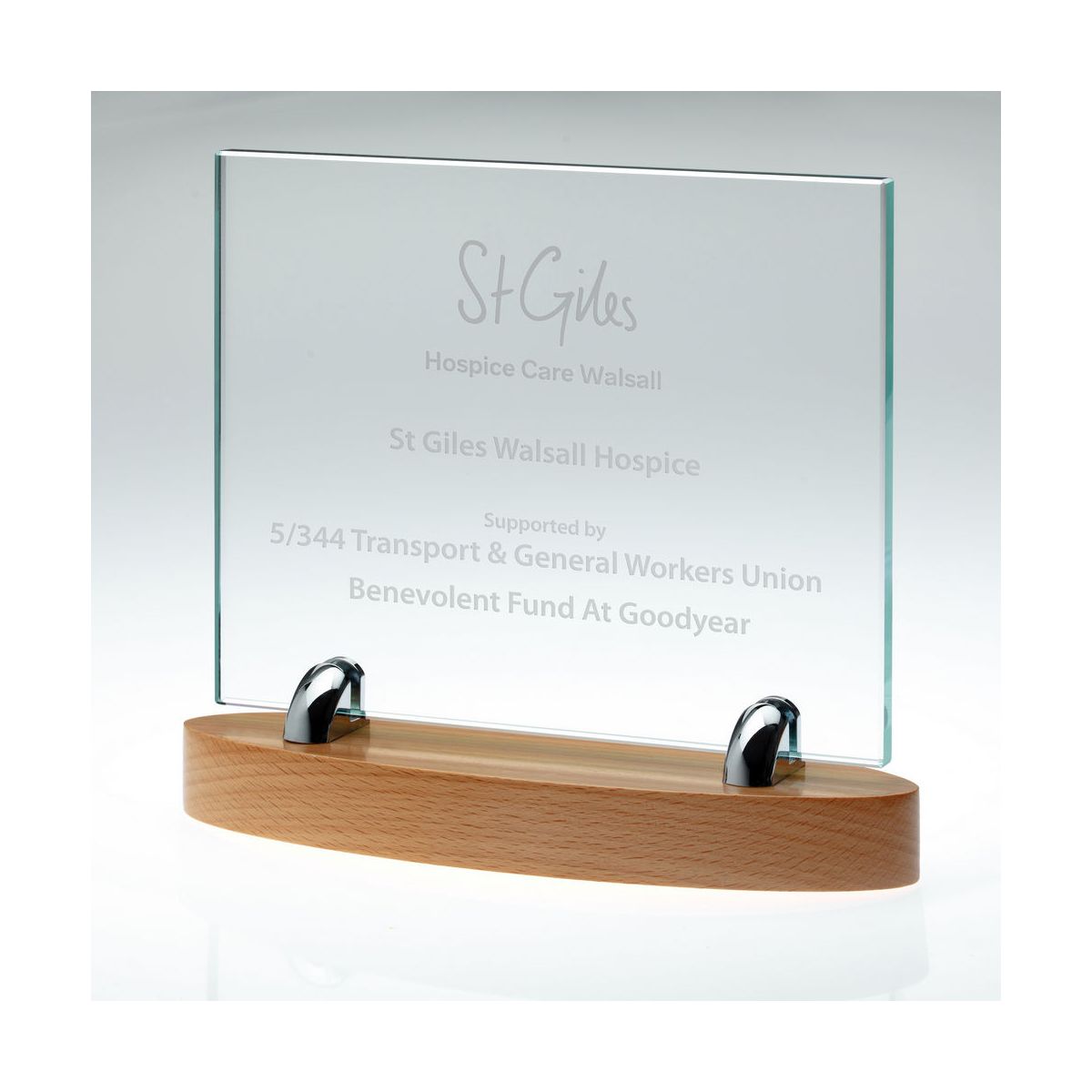 - Choice of colour print or glass engraving