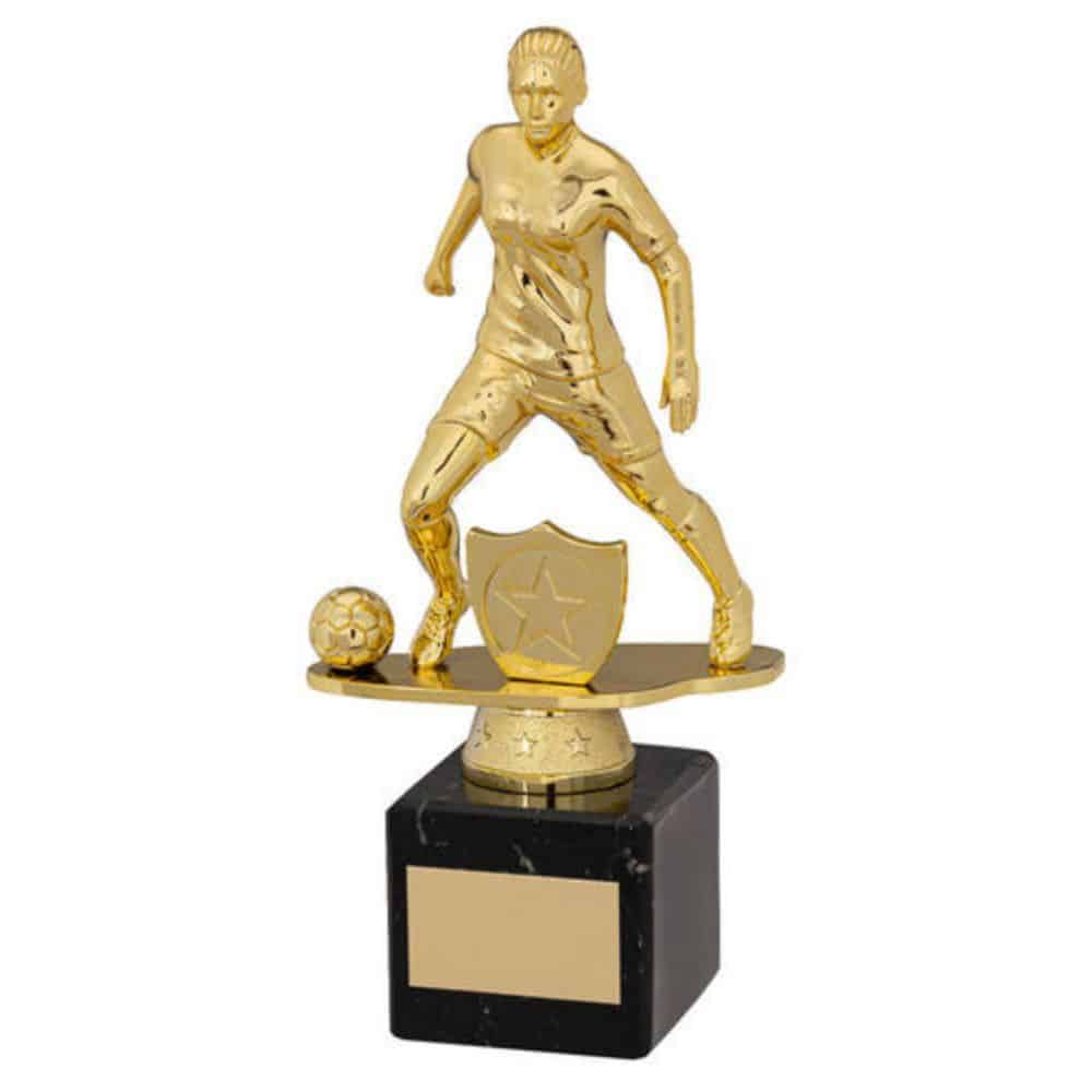 The Shield Star Female Football Trophy is a classic and eye-catching award designed to celebrate outstanding male football performance. Featuring a detailed male football figure set above a shield and star design, this trophy is ideal for Player of the Match, Top Scorer, Team Captain, and special achievement presentations.