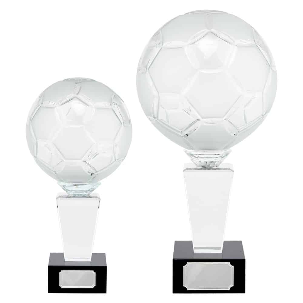 The Ultimate Football Crystal Award is available in two impressive sizes – 290mm and 390mm. Featuring a stunning 3D glass football mounted on a clear column and sleek black base, this award is perfect for recognising exceptional football achievements, from player of the match to end-of-season winners.